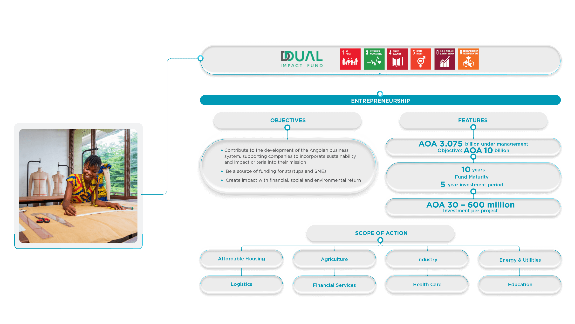 Dual Impact Fund: in partnership with Hemera Capital Partners, ATLANTICO is the initial investor in the Dual Impact Fund, the first impact fund in Angola. This is a specialised vehicle to support startups and SMEs that focuses on investing in projects that offer potential financial return allied with the resolution of social problems.