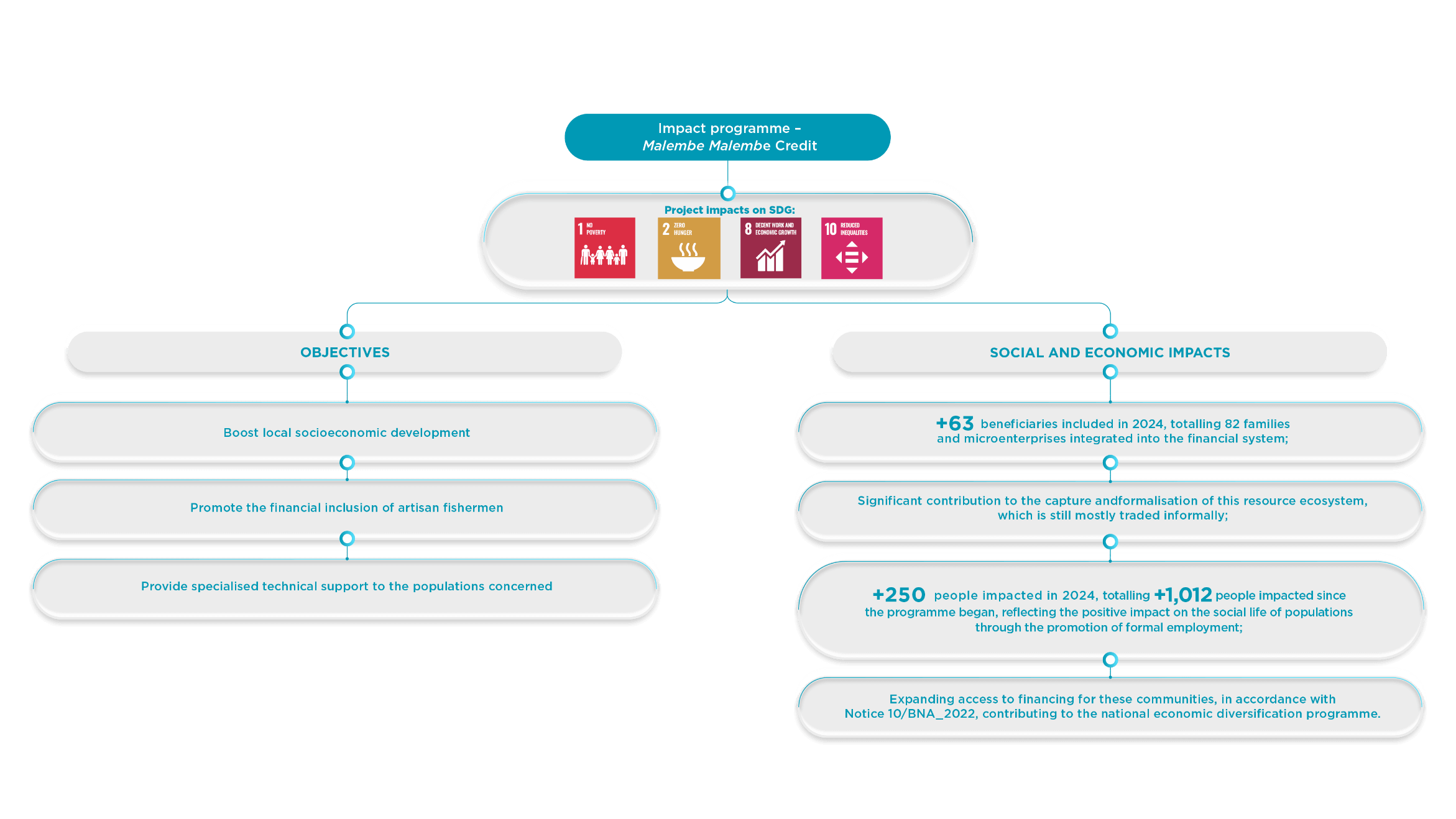 Impact programme – Malembe Malembe Credit: Recognising the crucial importance of artisanal fishing as an essential economic activity in Angola, ATLANTICO created this programme with the aim of providing access to adequate financing, enabling artisan fishermen to strengthen their operations and achieve greater financial stability. The programme aims to boost local socioeconomic development and promote financial inclusion in these communities.