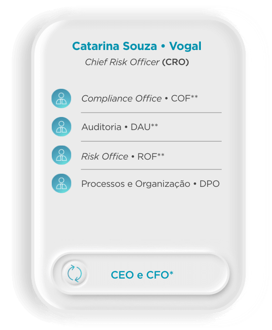 ** Reporte hierárquico, sendo que o reporte funcional é feito ao Presidente da Comissão de Auditoria e Controlo Interno para o Compliance Office e para a Auditoria Interna, e ao Presidente da Comissão de Riscos para o Risk Office.