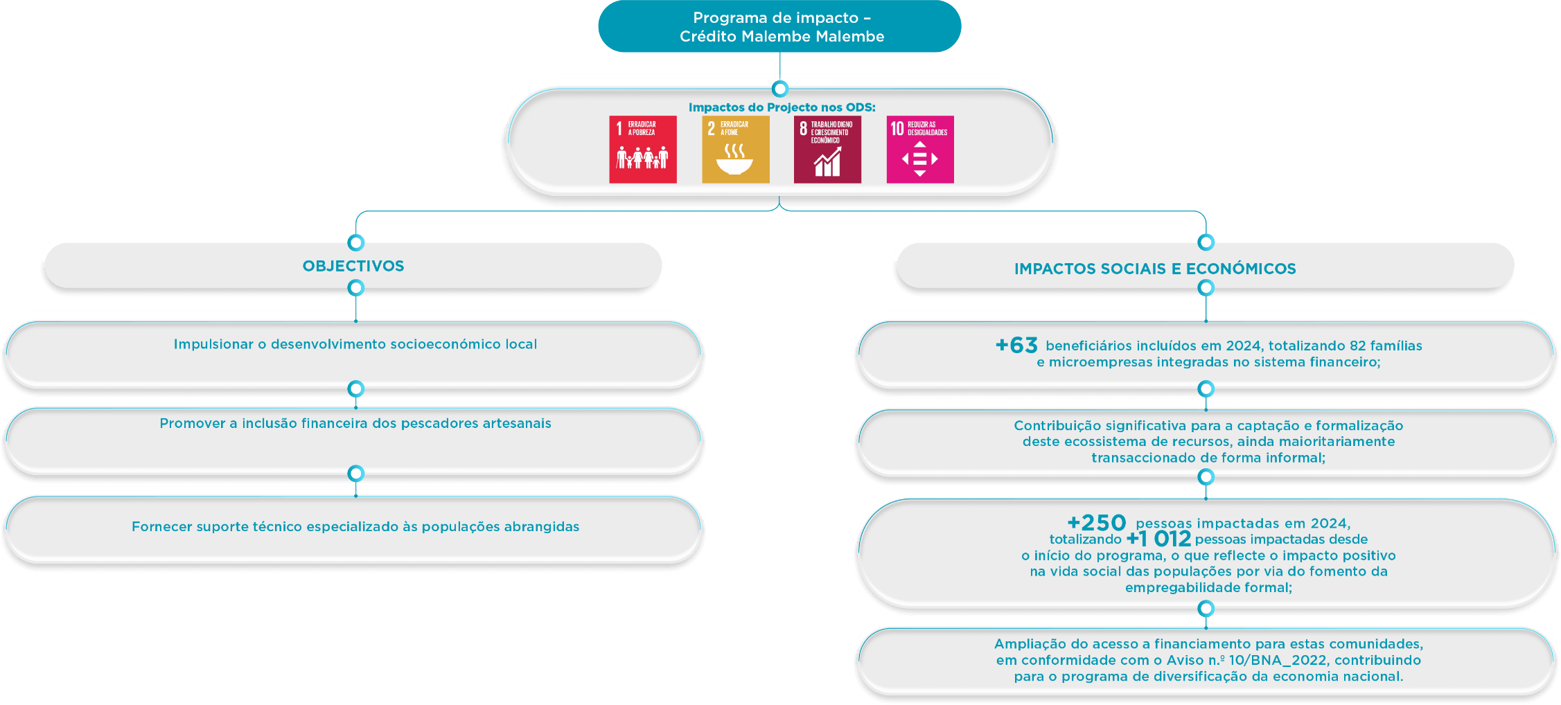 Programa de impacto – Crédito Malembe Malembe: Reconhecendo a importância crucial da pesca artesanal como uma actividade económica essencial em Angola, o ATLANTICO criou o programa “Malembe Malembe” com o objectivo de proporcionar acesso a financiamentos adequados, permitindo aos pescadores artesanais fortalecer as suas operações e alcançar maior estabilidade financeira. O programa visa impulsionar o desenvolvimento socioeconómico local e promover a inclusão financeira dessas comunidades.