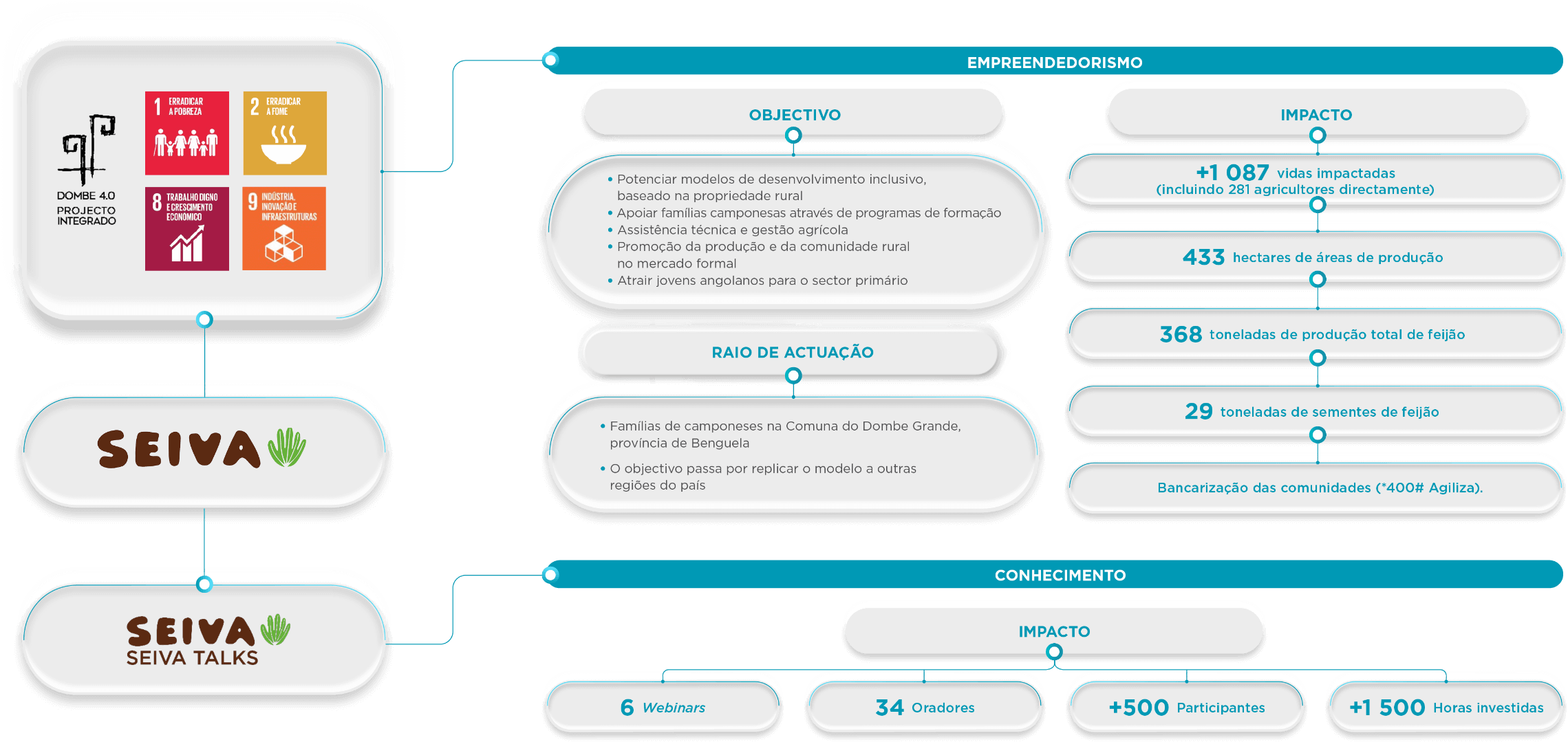 Projecto Dombe 4.0: Inclusão Financeira e Desenvolvimento Rural: iniciativa focada na comuna do Dombe Grande, província de Benguela. Este projecto visa promover a bancarização e a literacia financeira de agricultores locais, integrando-os no sistema financeiro formal.