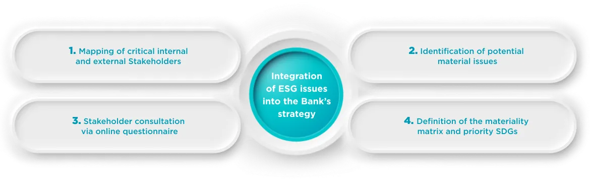 The integration of ESG issues into the Bank’s strategy took a participatory and transparent approach based on four stages.
